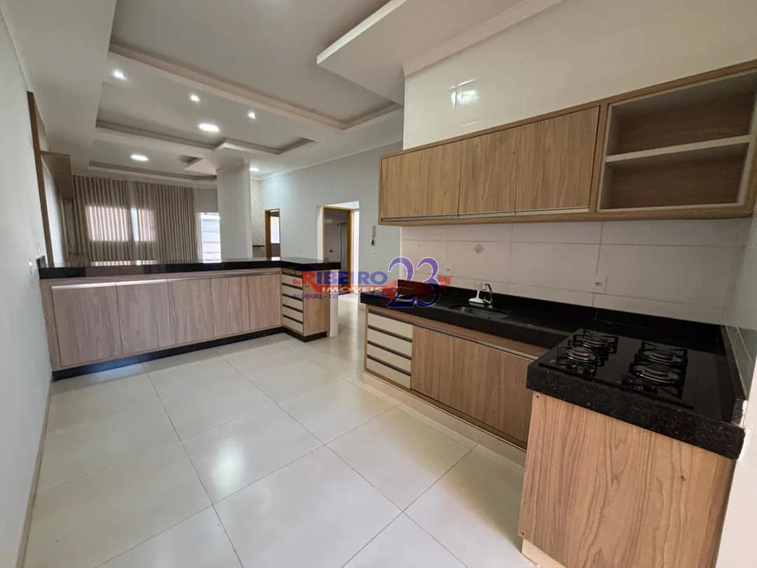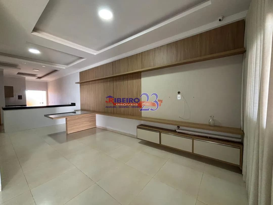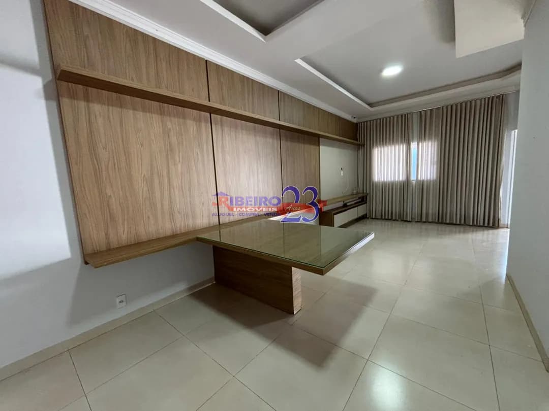 3 quartos sendo 1 suíte com closet, cortina e ar condicionado, jardim de inverno, sala com painel, mesa, cortina, cozinha com armários, lavanderia, garagem, jardim nos fundos. Valor R$ 2.200,00