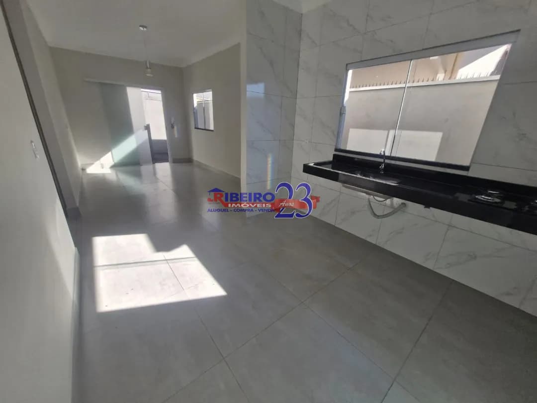 CASA 01 - TÉRREA - FUNDOS. Garagem, sala com cozinha integrada, 2 quartos, banheiro social com box, lavanderia. VALOR R$ 1.300,00