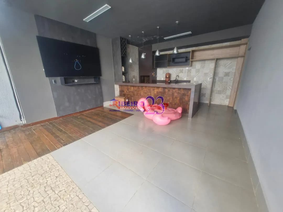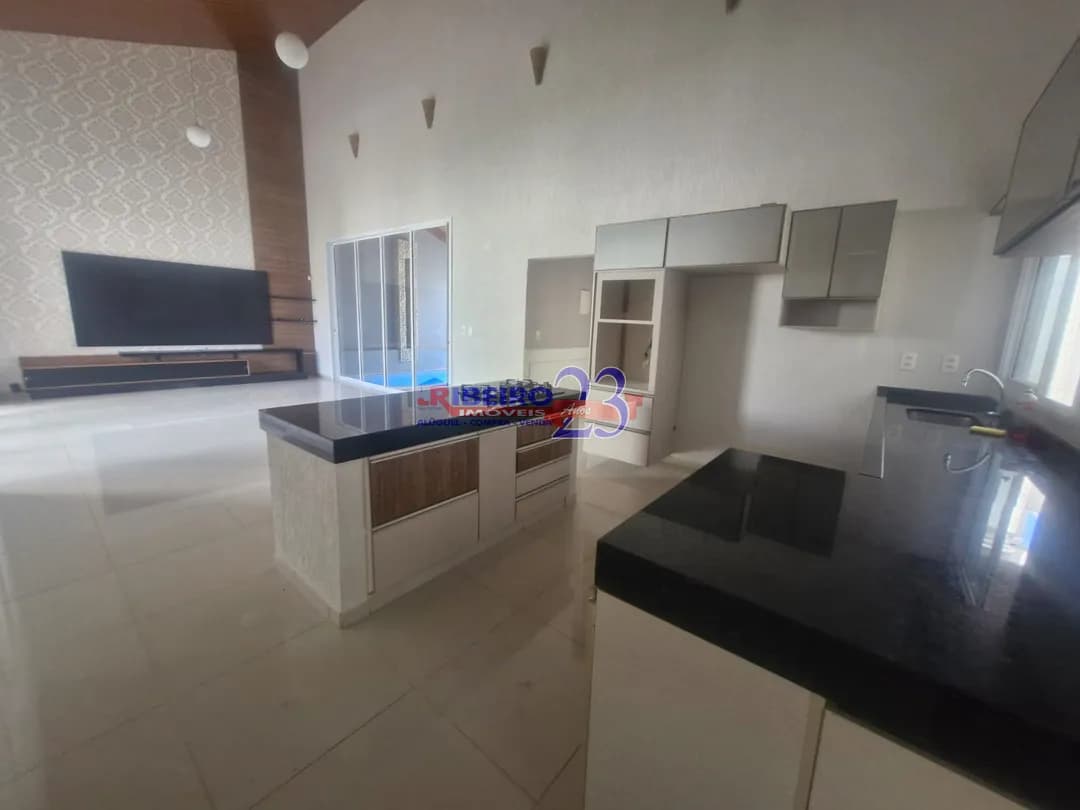 1°piso- garagem ampla, depósito, sala para 2 ambientes com painel de tv, cozinha com armários, fogão cook top, lavanderia, estendal, quiosque com armários, bancada, churrasqueira, painel de tv, banheiro, quiosque, banheiro social, 1 suíte com armários, sala de tv com painel e adega, piscina. 2°andar- 2 suítes sendo 1 suíte com closet, painel de tv. Segunda suíte com closet, painéis, sacada. Valor R$5.000,00