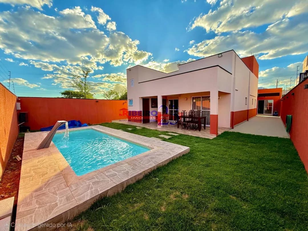 3 quartos sendo 2 suíte, sala, banheiro social, cozinha, lavabo, garagem, piscina. Terreno 384 m2 Casa 175 m2