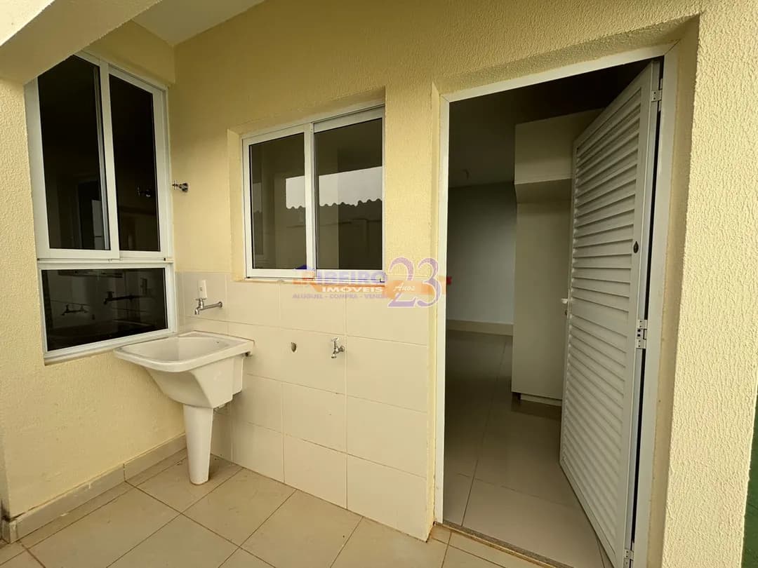 2 quartos sendo 1 suíte, sala, cozinha com armário, lavanderia, quintal cimentado, garagem 1 carro coberto e 1 descoberto. Condomínio com portaria 24 horas, play groud, portaria remota. VALOR R$ 2.100,00 incluso condomínio.
