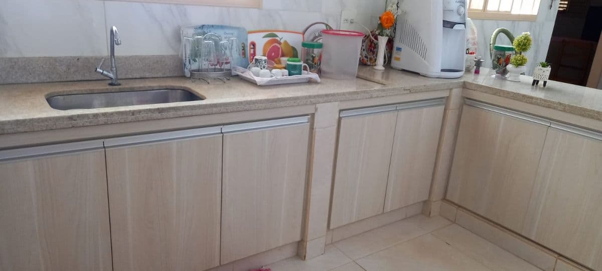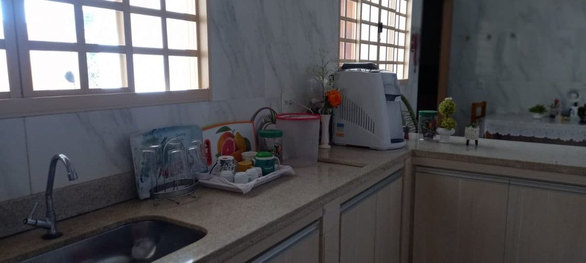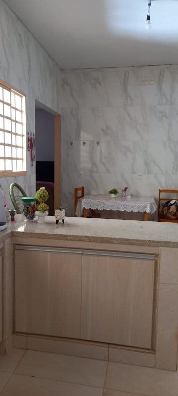 CASA COM 3 QUARTOS SENDO 1 SUITE, SALA, COZINHA ESTILO AMERICANA COM ARMÁRIOS, BANHEIRO SOCIAL, ÁREA SERVIÇO, QUIOSQUE COM BANCADA, QUARTO E BANHEIRO. METRAGEM CONSTRUÇÃO 182M2 E TERRENO 300M2.